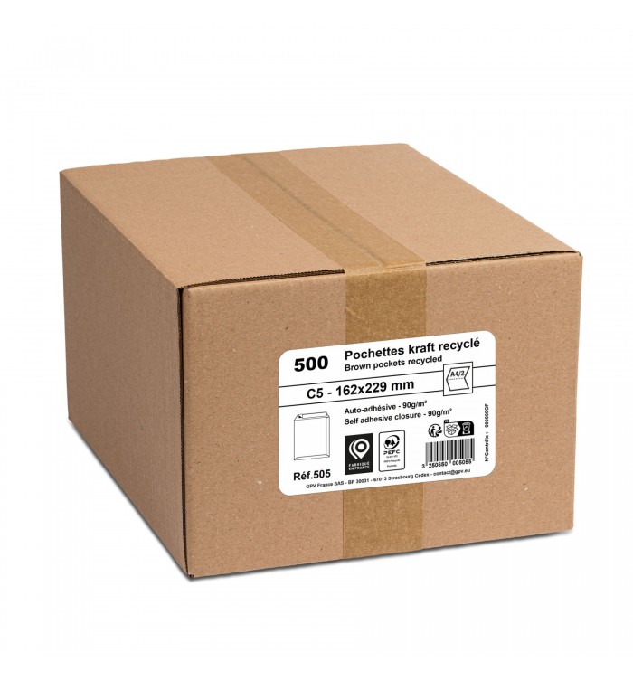 500 POCHETTES KRAFT 162X229mm 90GR AUTOADHESIVES