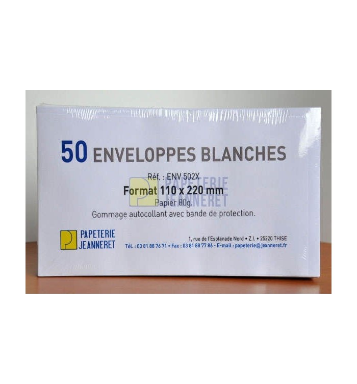 50 ENVELOPPES BLANCHES 110X220mm 80G AUTOADHESIVES