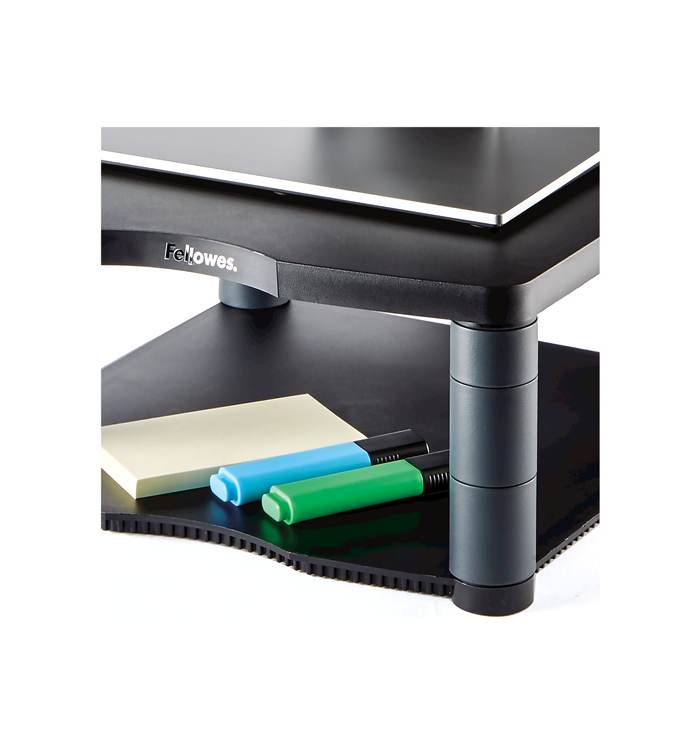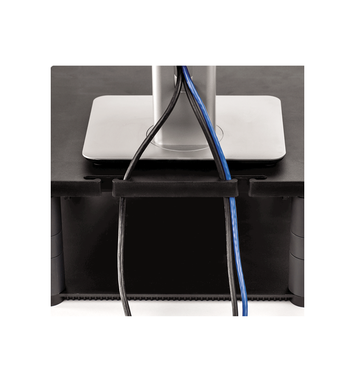 - Base en plastique durable servant aussi d'étagère pour le rangement de supports média, papier et documentation