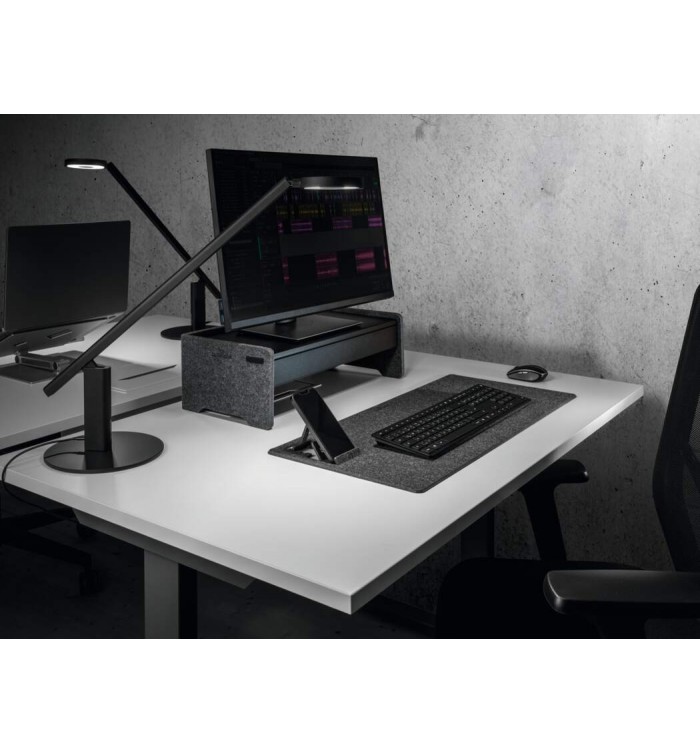 Fabriqué en feutre PET recyclé à 60 %, ce support est à la fois résistant, léger et respectueux de l’environnement. Il s’intègre parfaitement dans un espace de travail moderne, qu’il soit professionnel ou à domicile.