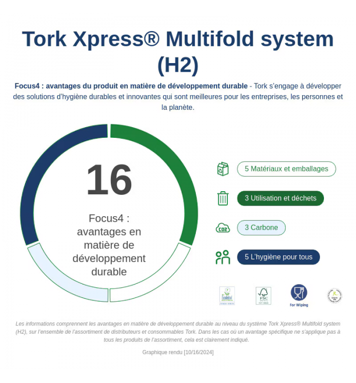 Optez pour la qualité et la durabilité avec les essuie-mains Tork Xpress®. Offrez à votre entreprise des produits d'hygiène de premier choix, respectueux de l'environnement et adaptés à vos besoins professionnels.