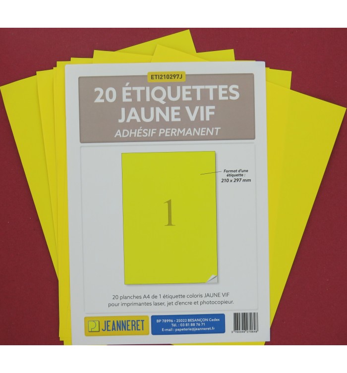 20 ETIQUETTES JAUNES 210X297MM SUR PLANCHE A4