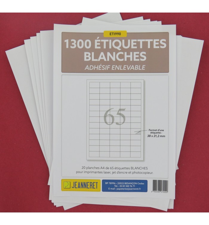 1300 ETIQUETTES ENLEVABLES 38X21,2MM SUR PLANCHE A4