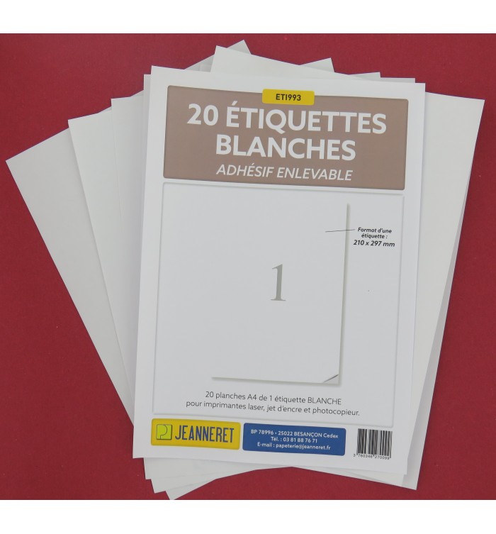 20 ETIQUETTES ENLEVABLES 210X297MM SUR PLANCHE A4