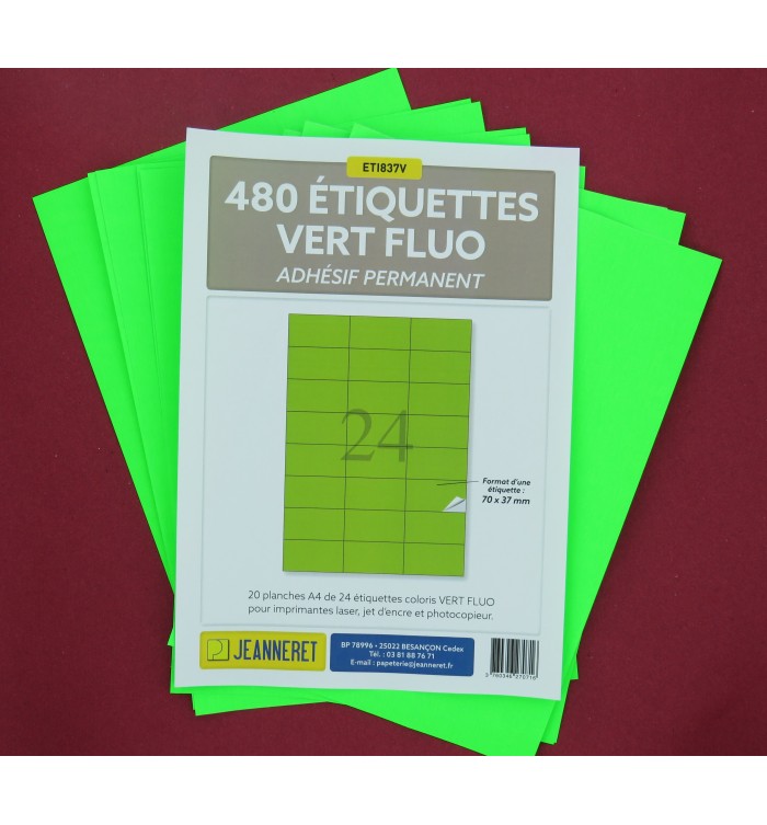 480 ETIQUETTES VERTE FLUO 70X37MM SUR PLANCHE A4