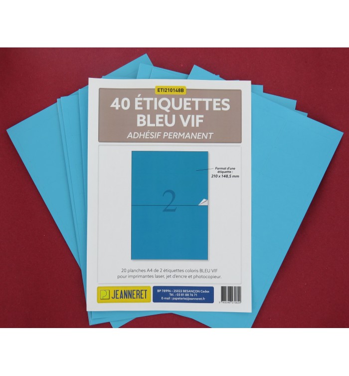40 ETIQUETTES BLEUES 210X148,5MM SUR PLANCHE A4