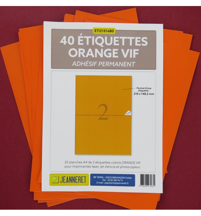 40 ETIQUETTES ORANGE 210X148,5MM SUR PLANCHE A4