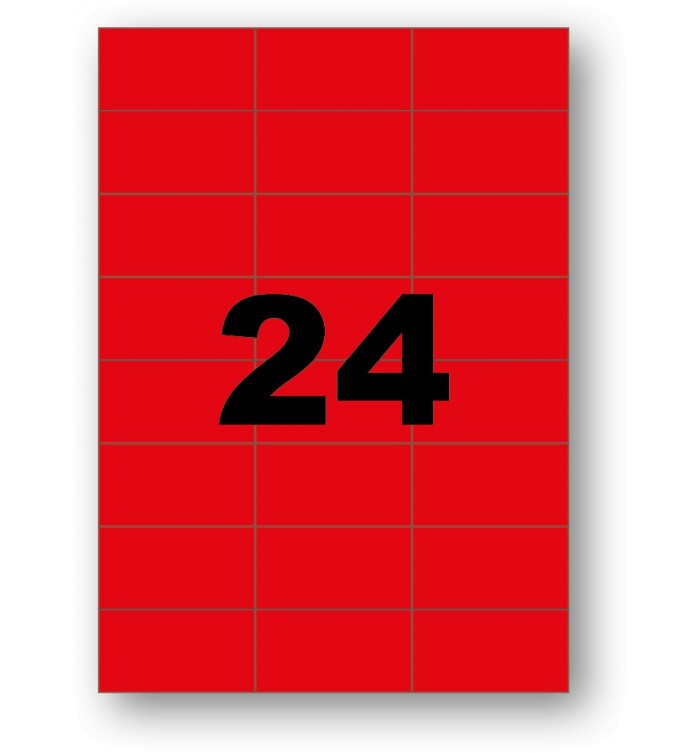 480 ETIQUETTES ROUGE FLUO 70X37MM SUR PLANCHE A4