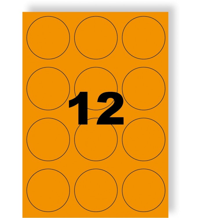 240 PASTILLES RONDES ORANGE FLUO DIAM. 63MM SUR PLANCHE A4