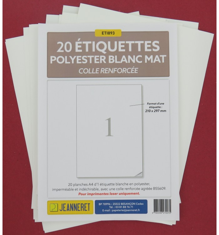20 ETIQUETTES POLYESTER BLANC 210X297MM