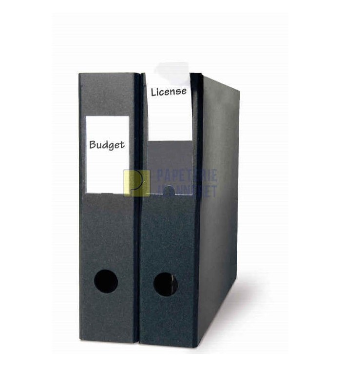 Gamme de porte-étiquettes pour personnaliser vos classeurs, boîtes etc... En polypro antistatique transparent, cet adhésif est permanent. Les bristols blancs sont fournis. Pour format A4.