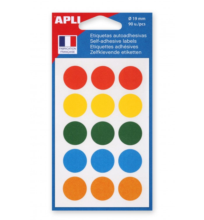 ETIQUETTES AUTOCOLLANTES DIAM 19mm COLORIS ASSORTIS - SACHET DE 90