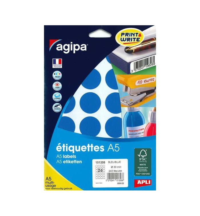 ETIQUETTES AUTOCOLLANTES DIAM 30mm BLEUES - PAQUET DE 240