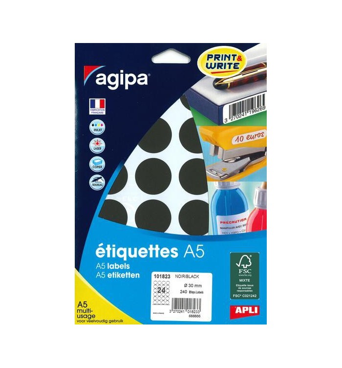 ETIQUETTES AUTOCOLLANTES DIAM 30mm NOIRES - PAQUET DE 240