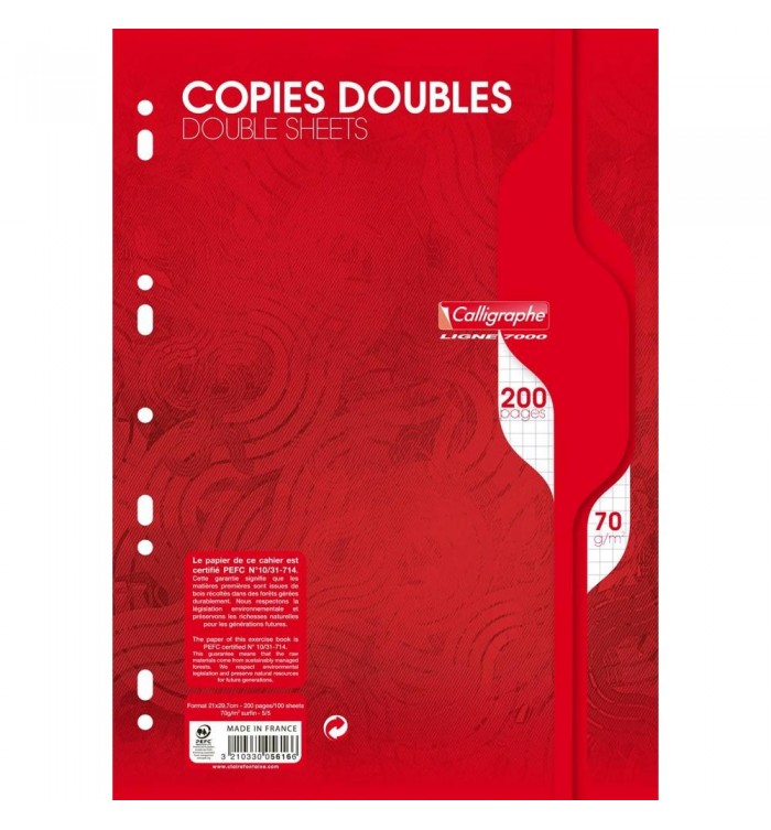 En choisissant les copies doubles A4 70g 5x5, vous participez à la gestion responsable des ressources forestières. Certifiées PEFC 100%, ces copies sont le fruit d'une fabrication respectueuse de l'environnement, assurée en France. Cet engagement pour la durabilité est essentiel pour les entreprises soucieuses de leur impact écologique.