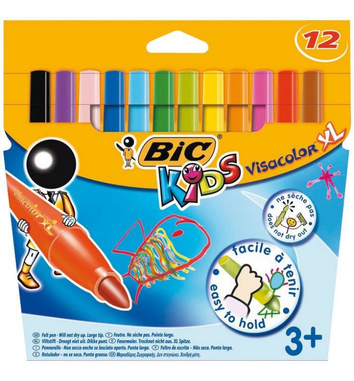 FEUTRES BIC VISACOLOR XL ASSORTIS - POCHETTE DE 12