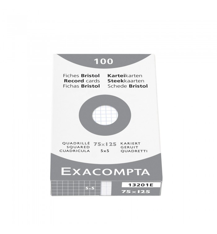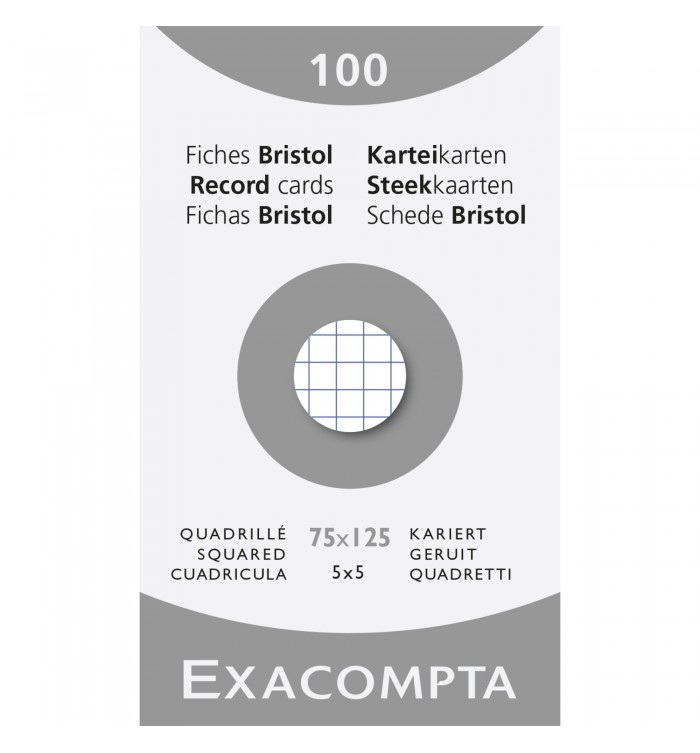 Étui de 100 fiches - bristol quadrillé 5x5 non perforé 75x125mm Blanc