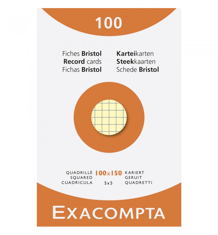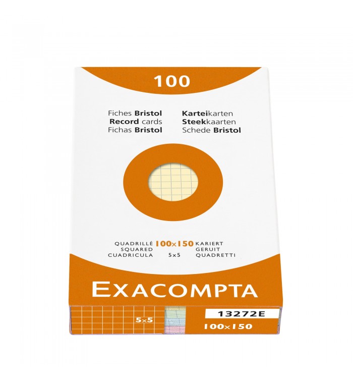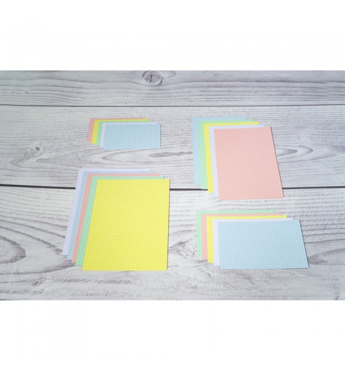 Étui de 100 fiches - bristol quadrillé 5x5 non perforé 100x150mm Couleurs assorties