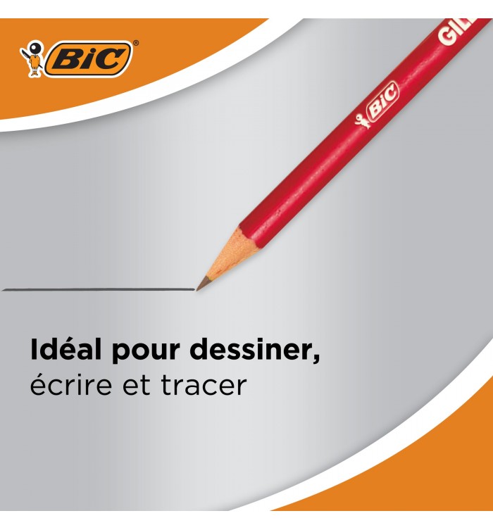 Le Rouge et le Noir : le crayon à papier Gilbert de BIC les porte à merveille. Il est disponible ici en mine HB de dureté moyenne mais il existe aussi en 2B (plus tendre). Choisissez la plus adaptée à vos besoins. Il a bonne mine ce crayon Gilbert : sa mine graphite est collée sur toute la longueur du crayon, pour une plus grande solidité. Elle est aussi facile à tailler et se gomme facilement.