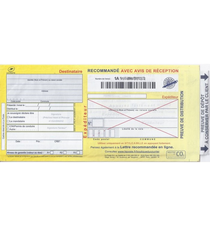 BOITE 100 LIASSES GUICHET RECOMMANDE ACCUSE RECEPTION / 207537