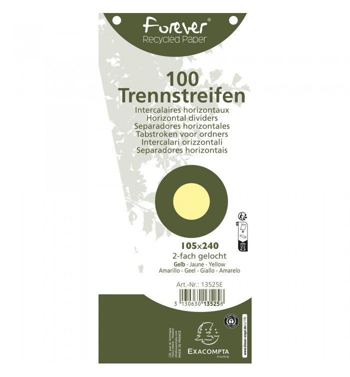 Paquet 100 fiches intercalaires trapézoïdales unies perforées Forever - 105x240mm Jaune