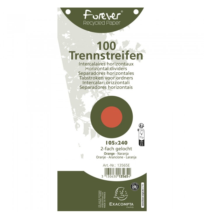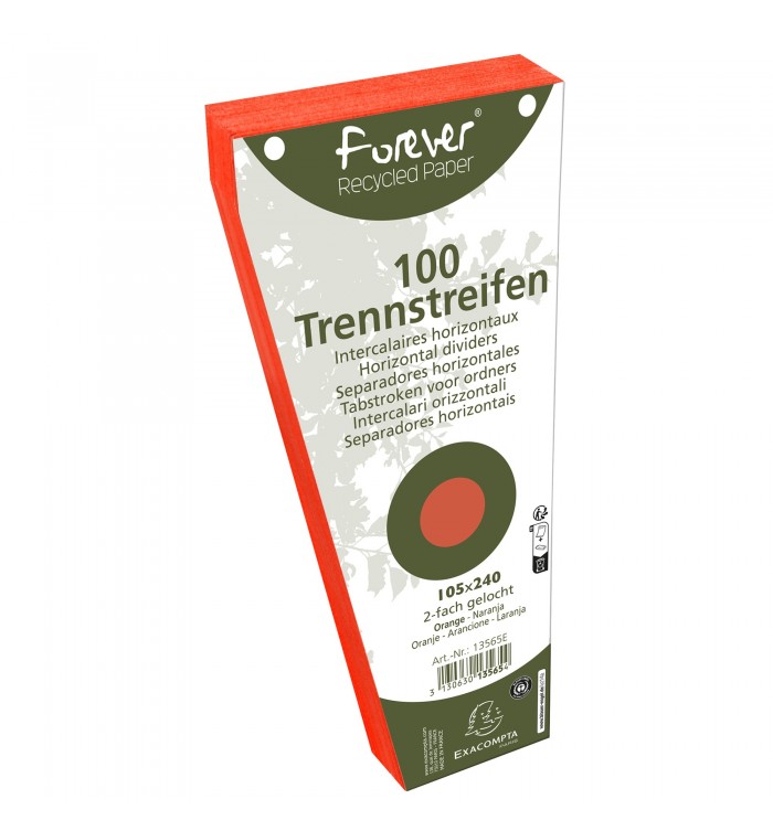 Paquet 100 fiches intercalaires trapézoïdales unies perforées Forever - 105x240mm Orange