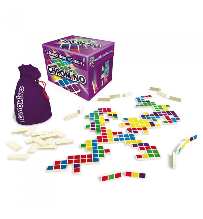 Contenu : Pièces de jeu colorées (Chrominos), sac de rangement, règle du jeu.