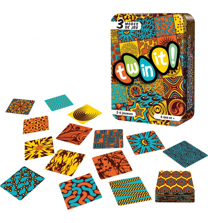 À Twin it, les cartes s’accumulent sur la table en formant une mosaïque colorée. Votre but ? Essayer de détecter plus vite que les adversaires les paires de cartes aux motifs exactement identiques !