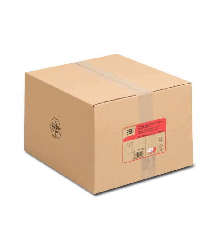 250 POCHETTES KRAFT A SOUFFLET 229X324X30mm A FENETRE
