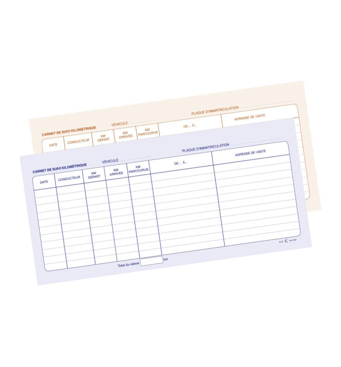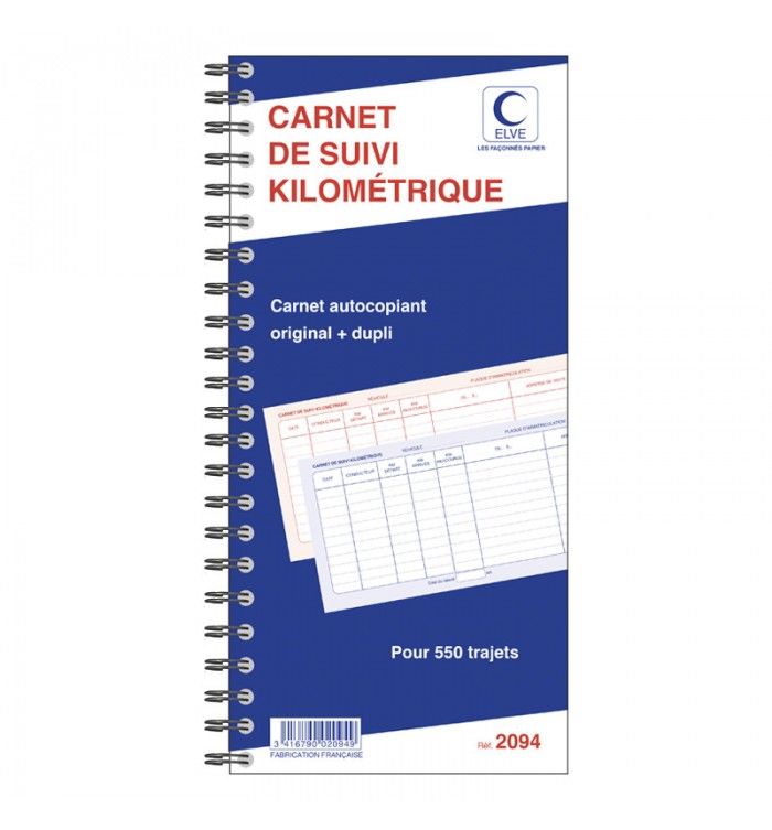Carnet à spirale autocopiant de suivi kilométrique. Il permet de faire le relevé des frais kilométriques de 550 trajets des véhicules de fonction, service ou livraison et d'identifier le conducteur en cas d'infraction. Son dos en carton rigide avec rabat intégré permet de le remplir au volant directement. Vendu par paquet de 5 carnets. Conforme aux articles L121-6 du 15 décembre 2016 et L121-3 du Code de la Route, modifié par la loi n° 2016-1547 du 18 novembre 2016 car le carnet indique la date et le nom du conducteur du véhicule. Format 297x140mm