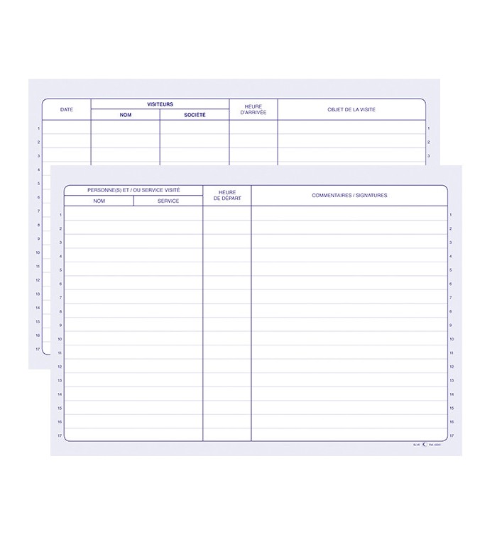 Registre d'accueil des visiteurs situé à l'entrée des entreprises, administrations ou tout établissement afin d'enregistrer chronologiquement le nom des visiteurs, le service et la personne visités.