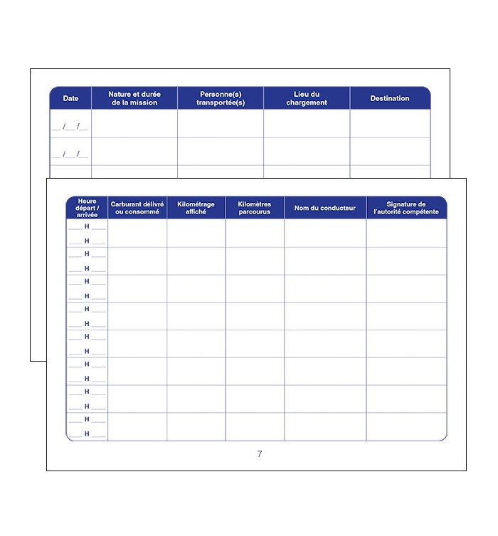 CARNET DE BORD POUR VEHICULE DE SERVICE