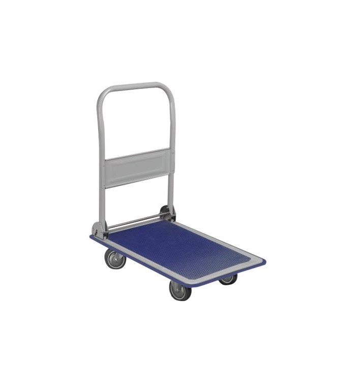 Chariot plate-forme en tôle d'acier embouti, revêtement bleu antidérapant,