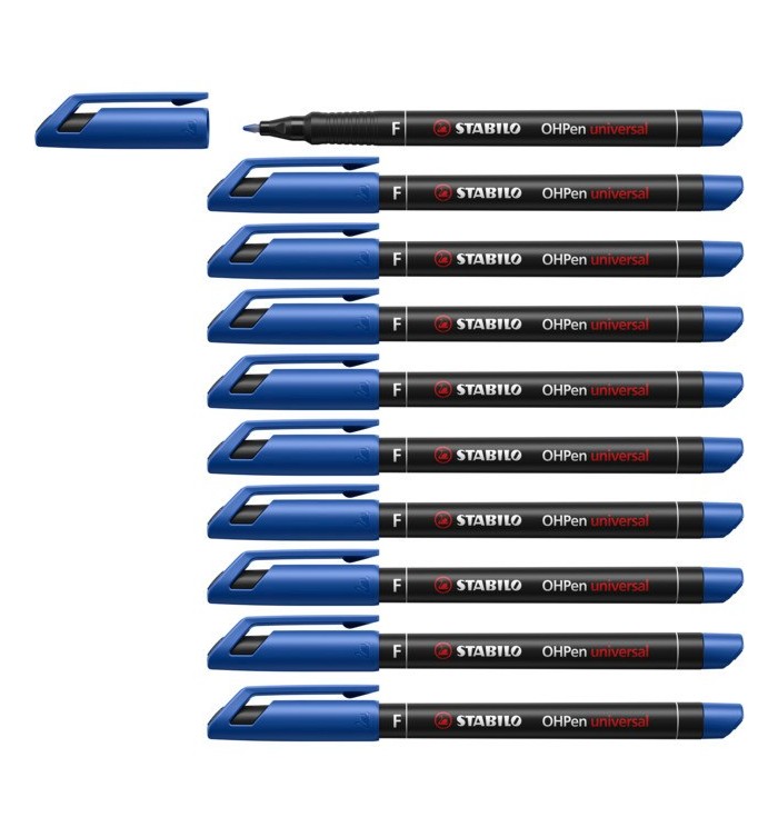 Fabriqué en Allemagne, STABILO OHPen Universal permanent est un feutre à encre indélébile pour écrire sur presque toutes les surfaces. Il est parfait en particulier pour une utilisation polyvalente sur toutes les surfaces lisses. Il est bien sûr possible d’écrire sur du papier, mais également sur le verre, le métal, le plastique, un disque ou un CD, des supports transparents… Son grip antidérapant rend son utilisation confortable. Grâce à son clip d’accroche, il est facilement transportable. Il peut rester ouvert sans capuchon jusqu'à 72h.