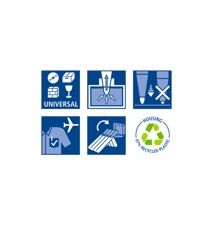 Feutre universel pour la rétroprojection et la plupart des surfaces : papier, carton, film de rétroprojection, plastique, métal, polystyrène, verre, porcelaine, bois, cuir, pierre, …