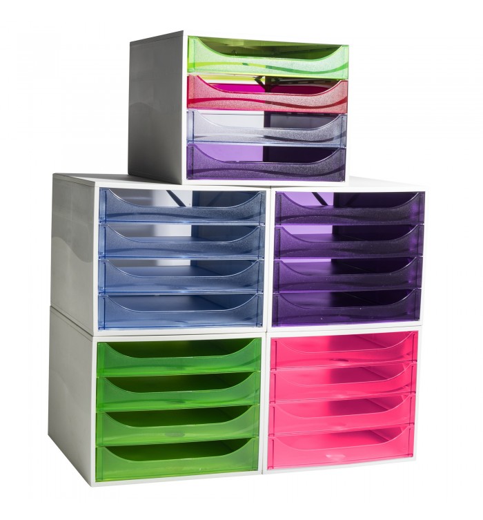 Module de classement Ecobox Linicolor 4 tiroirs Framboise