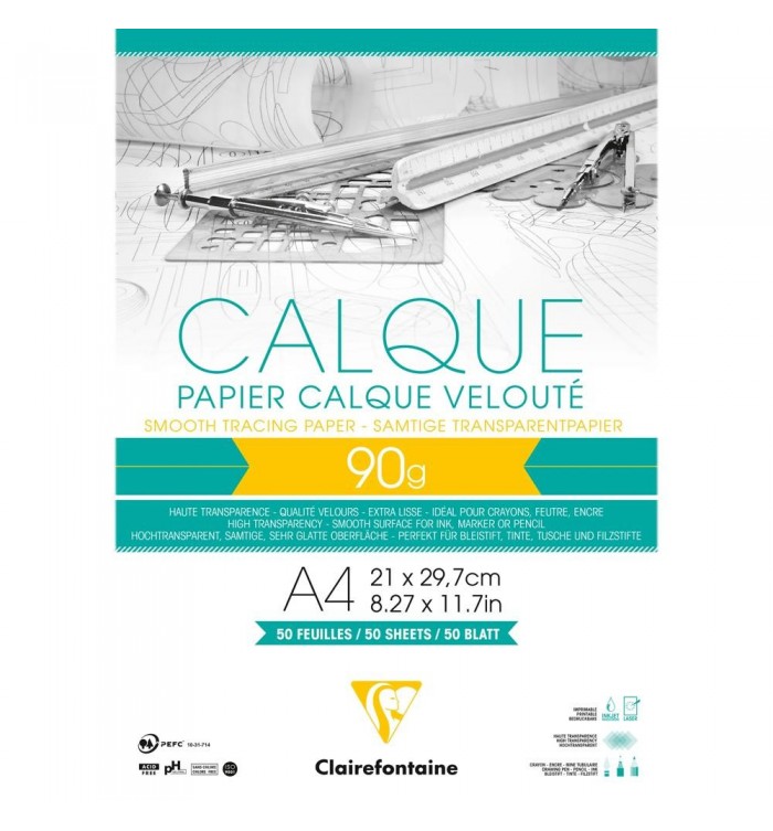 Le bloc de papier Calque A4 Clairefontaine 97133C 90g est l'allié idéal des professionnels de la création graphique, de l'architecture, de la cartographie ou encore de la reproduction de plans.