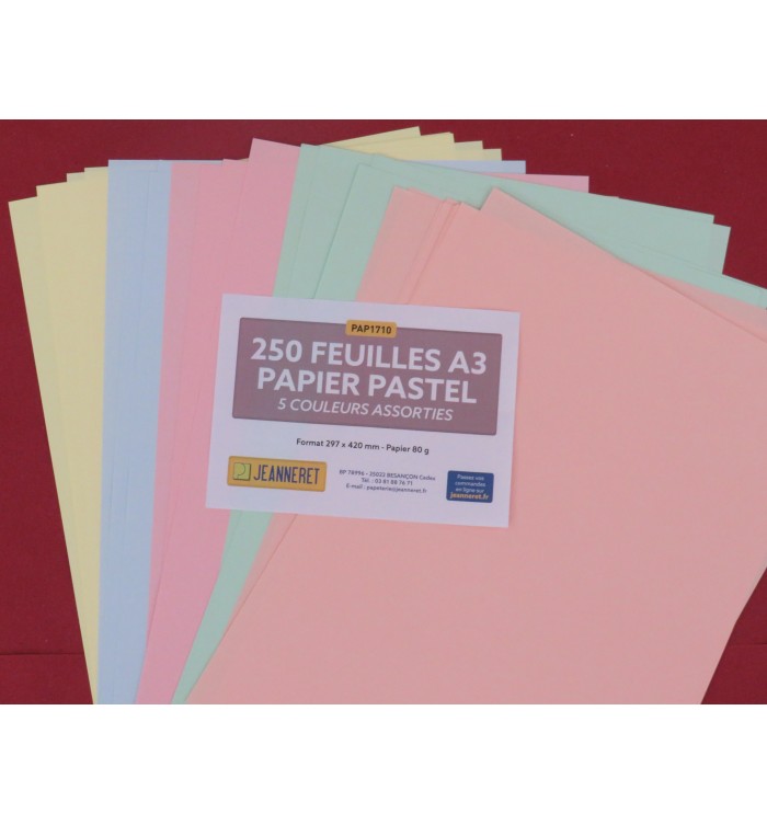 RAMETTE 5X50F REPRO 80G A3 COULEURS ASSORTIES PASTEL