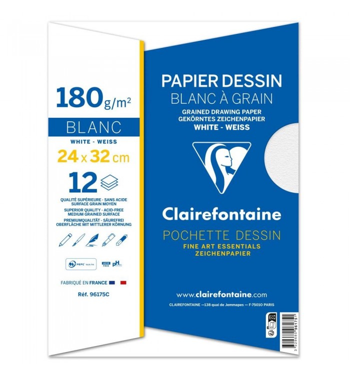 PAPIER DESSIN BLANC A GRAIN 240X320 180G/POCH12F