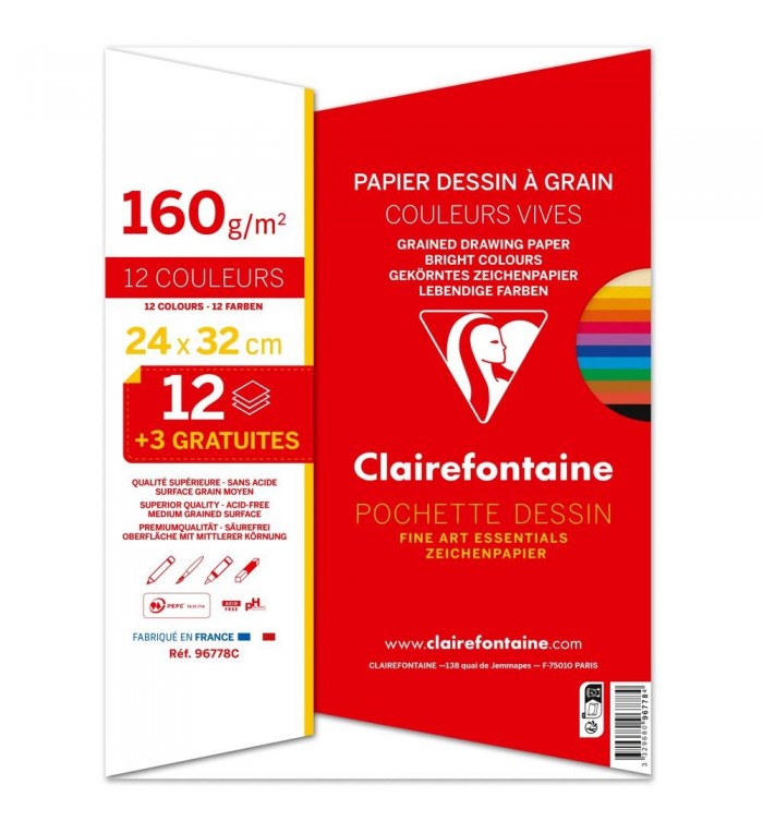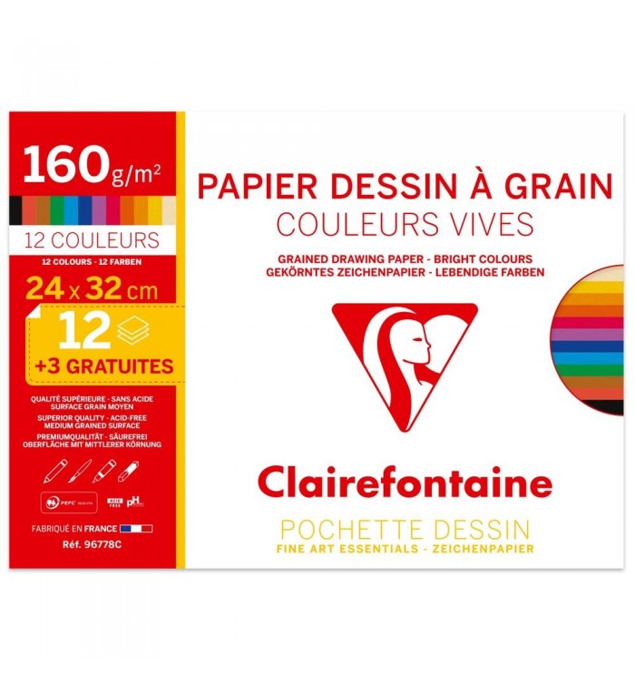 PAPIER DESSIN COUL VIVES ASS 240X320 160G / POCH 12F