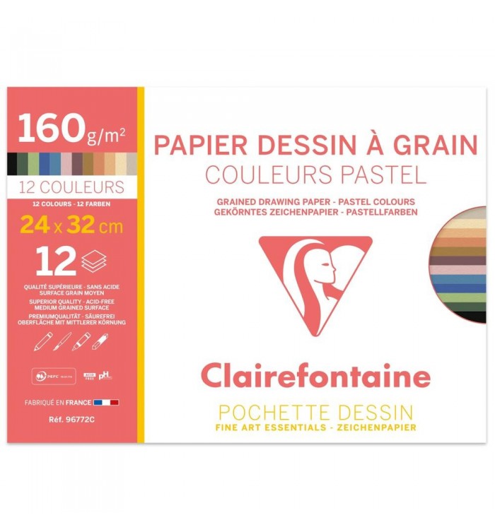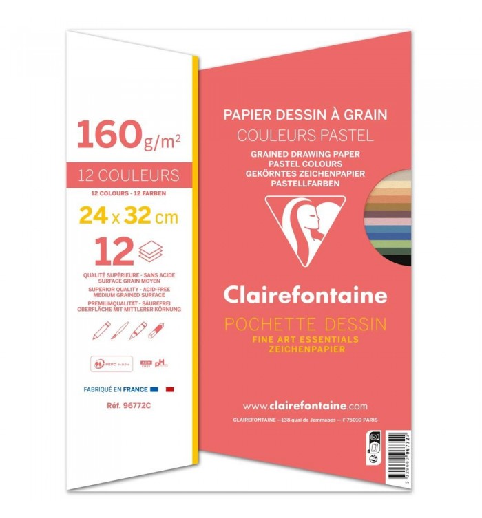PAPIER DESSIN COUL PASTEL ASS 240X320 160G / POCH 12F