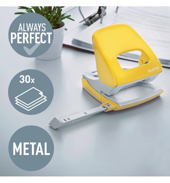 PERFORATEUR METAL 2 POINCONS LEITZ WOW 5008 JAUNE