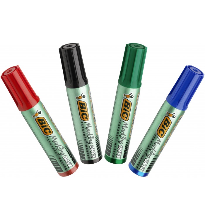 - Ces marqueurs indélébiles BIC Marking marquent très lisiblement sur la plupart des surfaces : verre, bois, plastique, métal, carton