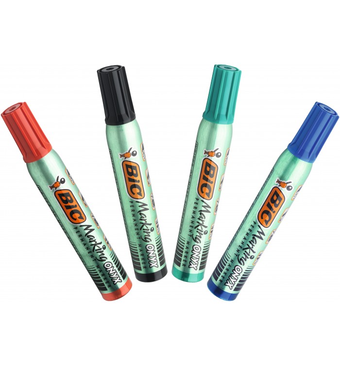 - Rien ne résiste au marqueur indélébile BIC Onyx 1591 : verre, bois, plastique, métal, carton, il écrit sur la plupart des surfaces