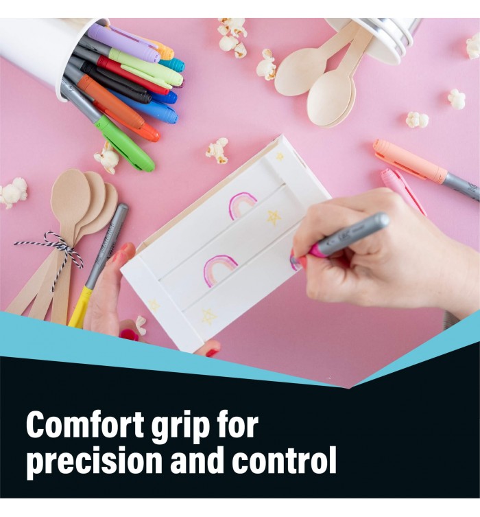 Les marqueurs indélébiles BIC Intensity écrivent sur la plupart des surfaces, comme le verre, le métal, le papier enduit, les photos ou encore le plastique. Déclinés en une variété de couleurs intenses, ces feutres permanents ajoutent une touche artistique à tous vos projets, objets et notes. Leur grip en caoutchouc texturé offre un excellent confort et un bon contrôle du tracé.