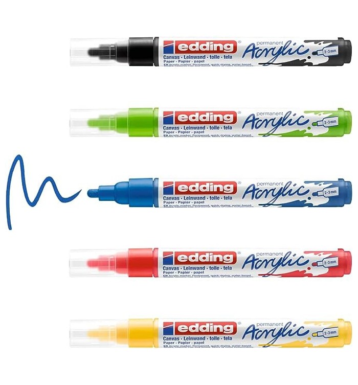 Le marqueur polyvalent dans la gamme acrylique ! Vous recherchez un marqueur acrylique qui s'accorde avec tout ? Ne cherchez pas plus loin que le Marqueur acrylique pointe moyenne EDDING ! Avec sa pointe ogive moyenne et une largeur de trait de 2 à 3 mm, vous pouvez tracer des lignes et des formes avec précision sur la toile.