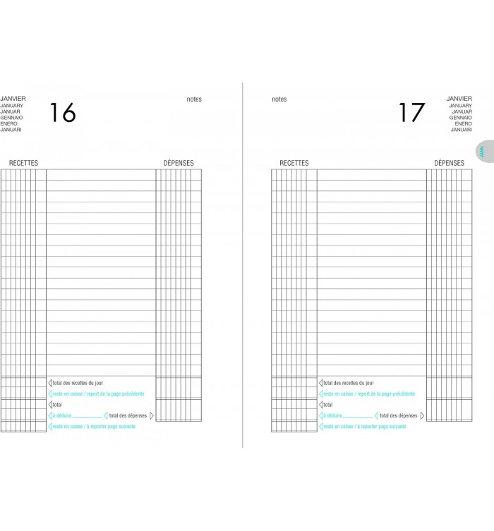 Cet agenda est l'outil indispensable pour une gestion rigoureuse de vos finances au quotidien. Conçu pour les professionnels soucieux de leur organisation, cet agenda perpétuel offre une solution efficace pour suivre vos recettes, dépenses et reports tout au long de l'année.