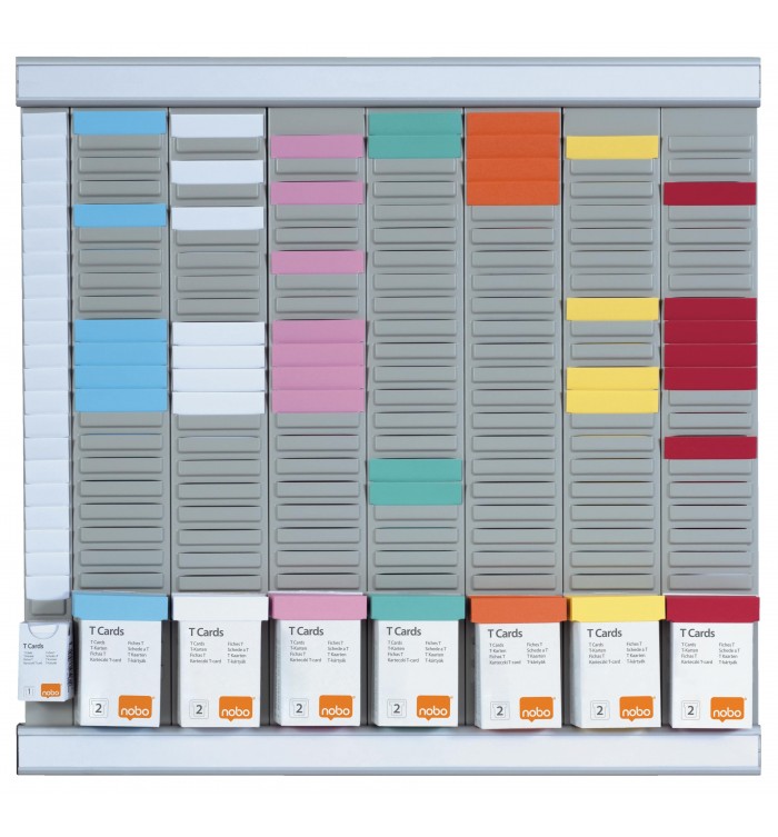 Ce planning à fiches T NOBO, à 7 colonnes indice 2 (+1 colonne index) et 24 fentes, est l'outil idéal pour optimiser votre temps en organisant les visites professionnelles et la gestion des réunions hebdomadaires ou mensuelles. Il contient tous les accessoires dont vous avez besoin pour créer facilement un planning. Facile à installer, il est livré avec un kit de fixation murale.