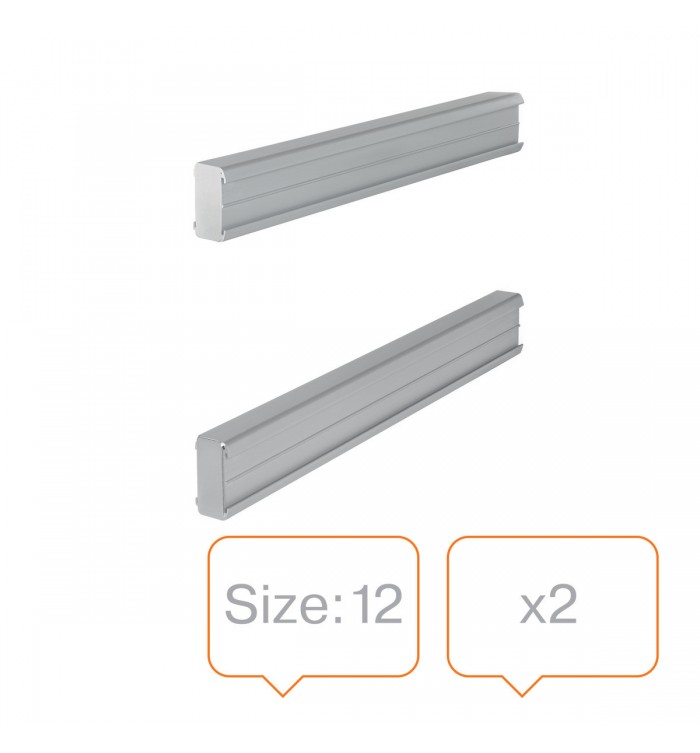 En aluminium anodisé naturel. Livrés par paires pour sécuriser vos bandes planning en haut et en bas. Les bandes planning s'emboîtent dans les rails. 2 bandes de titre incluses. Couleur : argent. Indice 12.