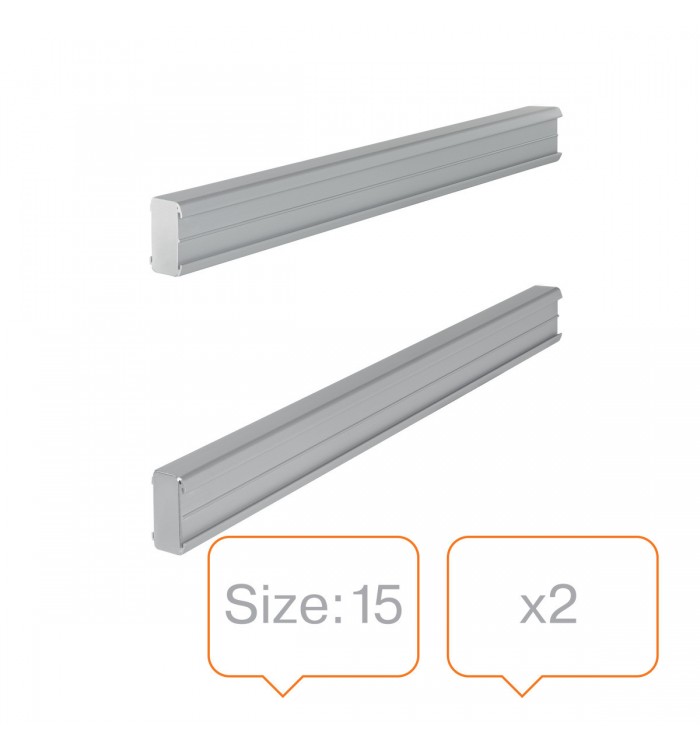 En aluminium anodisé naturel. Livrés par paires pour sécuriser vos bandes planning en haut et en bas. Les bandes planning s'emboîtent dans les rails. 2 bandes de titre incluses. Couleur : argent. Indice 15.
